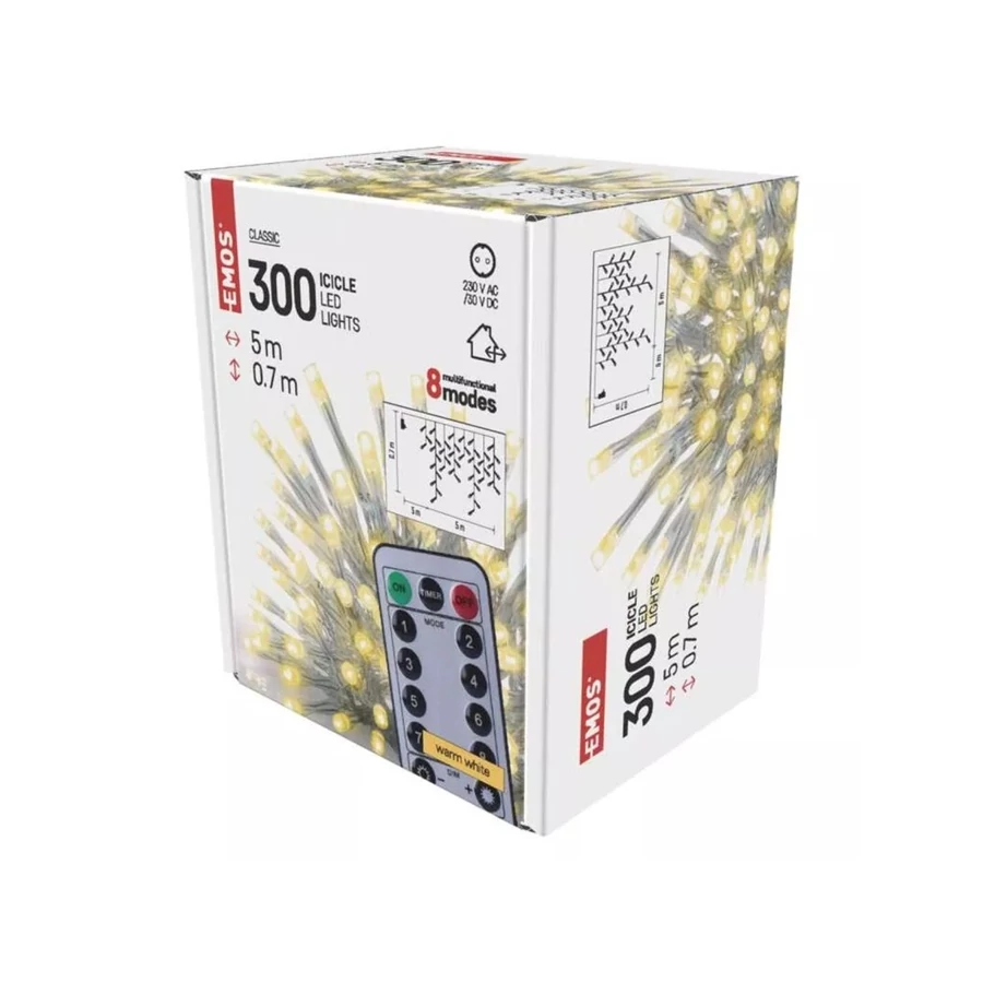 Jégcsap LED fényfüggöny (5m hosszú, 70cm magas, 300 LED) meleg fehér, 8 funkciós, távirányító