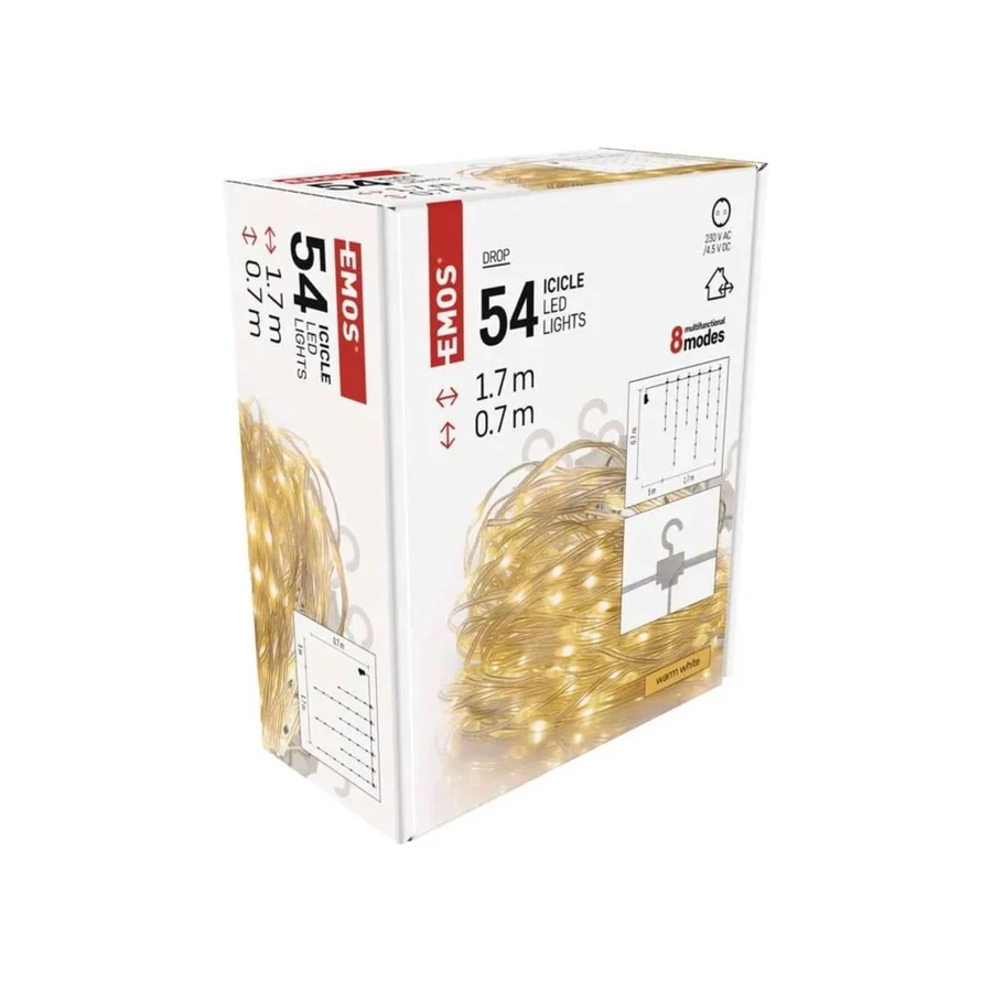 1.7 méter hosszúságú, 0.7 méter magasságú fényfüggöny! Fogyasztása csupán 2.1 Watt a 54 darab energiatakarékos lednek köszönhetően. IP44 védettséggel, kültéren és beltéren is alkalmazható! A tápvezeték hossza: 5 méter.